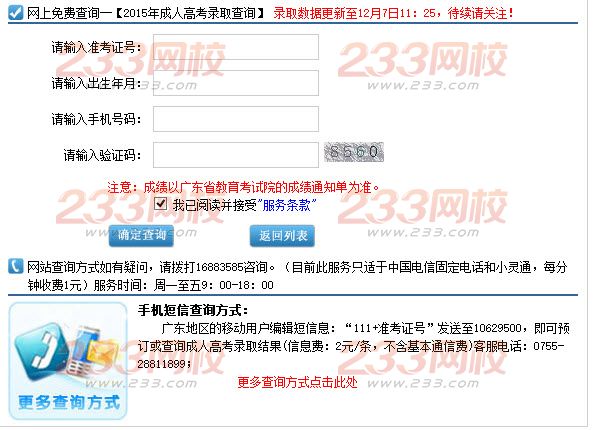 广东东莞市2015年成考高起点录取结果查询时间:12月7日