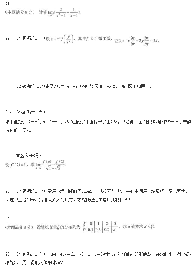 本文标签:广东成考高等数学二2020年广东成人高考专升本《高等数学二》押题试卷四