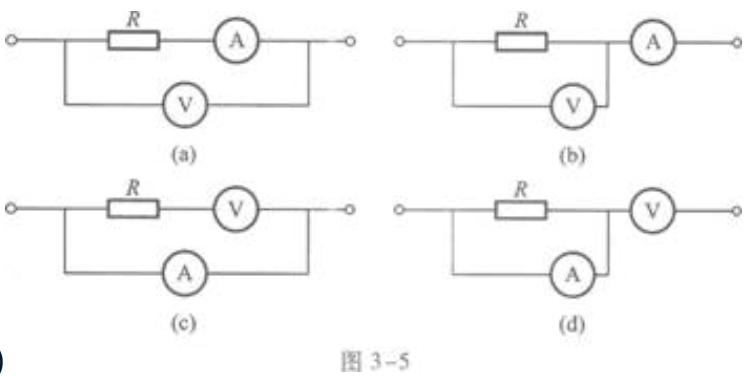 8[.单选题]用伏安法测量电阻,已知待测电阻R与电压表的电阻相差不多,而R远大于电流表的内阻,测量线路应为图3-5中的()。