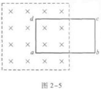 3[.单选题]如图2-5所示,在虚线范围内有匀强磁场,磁场方向垂直纸面向里。已知矩形线圈abcd运动到图示位置时,cd边所受磁场力的方向竖直向上,则线圈的运动情形是()。