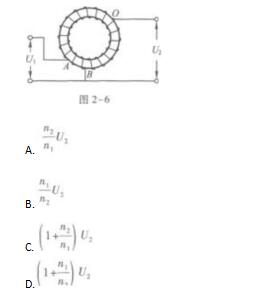 4[.单选题]如图2-6所示,从绕在铁心上的线圈AB的O点引出一个抽头,已知AO间的匝数为n1,BO间的匝数为n2。当BO间的交变电压为U2时,AB间的交变电压为()。