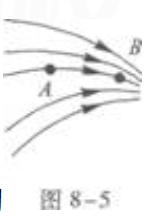10[.单选题]空间部分区域的电场线如图8-5所示,电场中有A、B两点,则()。